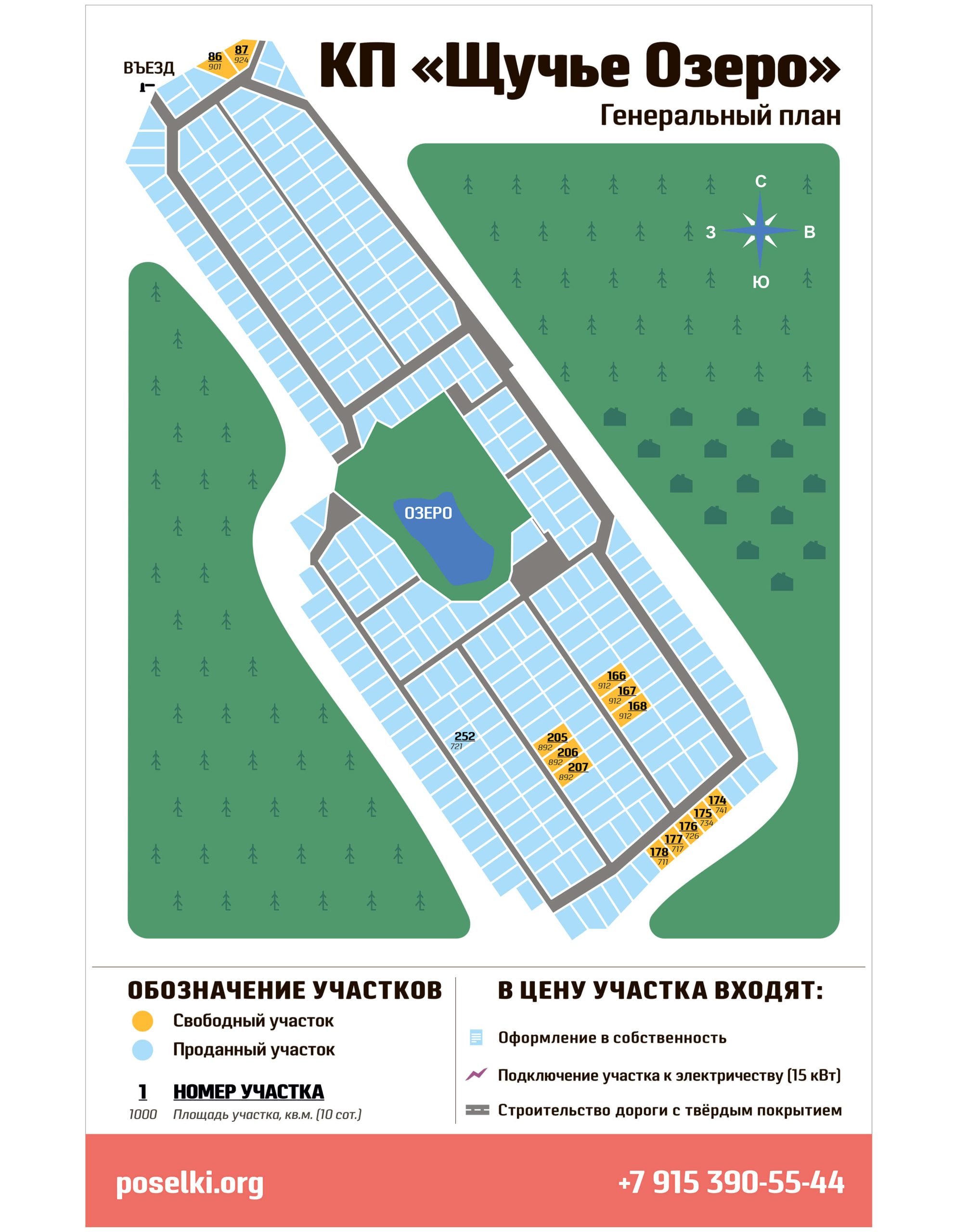 На личном транспорте: на машине до поселка от МКАД по трассе М-11 или по Ленинградскому шоссе ехать около 1 часа. За г. Солнечногорск через 17 км будет п. Чайковского. Здесь нужно будет развернуться в обратную сторону и проехать еще 2,7 км. У д. Давыдково свернуть направо. КП “Щучье Озеро” будет за д. Покров.